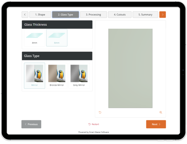 Smart Glazier Web Configurator can be easily added to your current website and you can start taking enquiries for mirrors instantly.