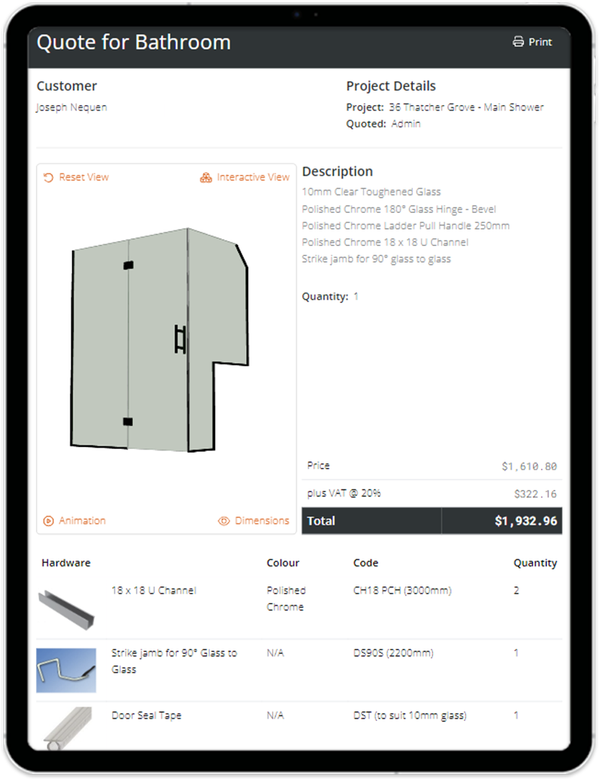 "Smart Glazier's Shower Designer has sped up our sales and installation process. It has increased the sales we make."